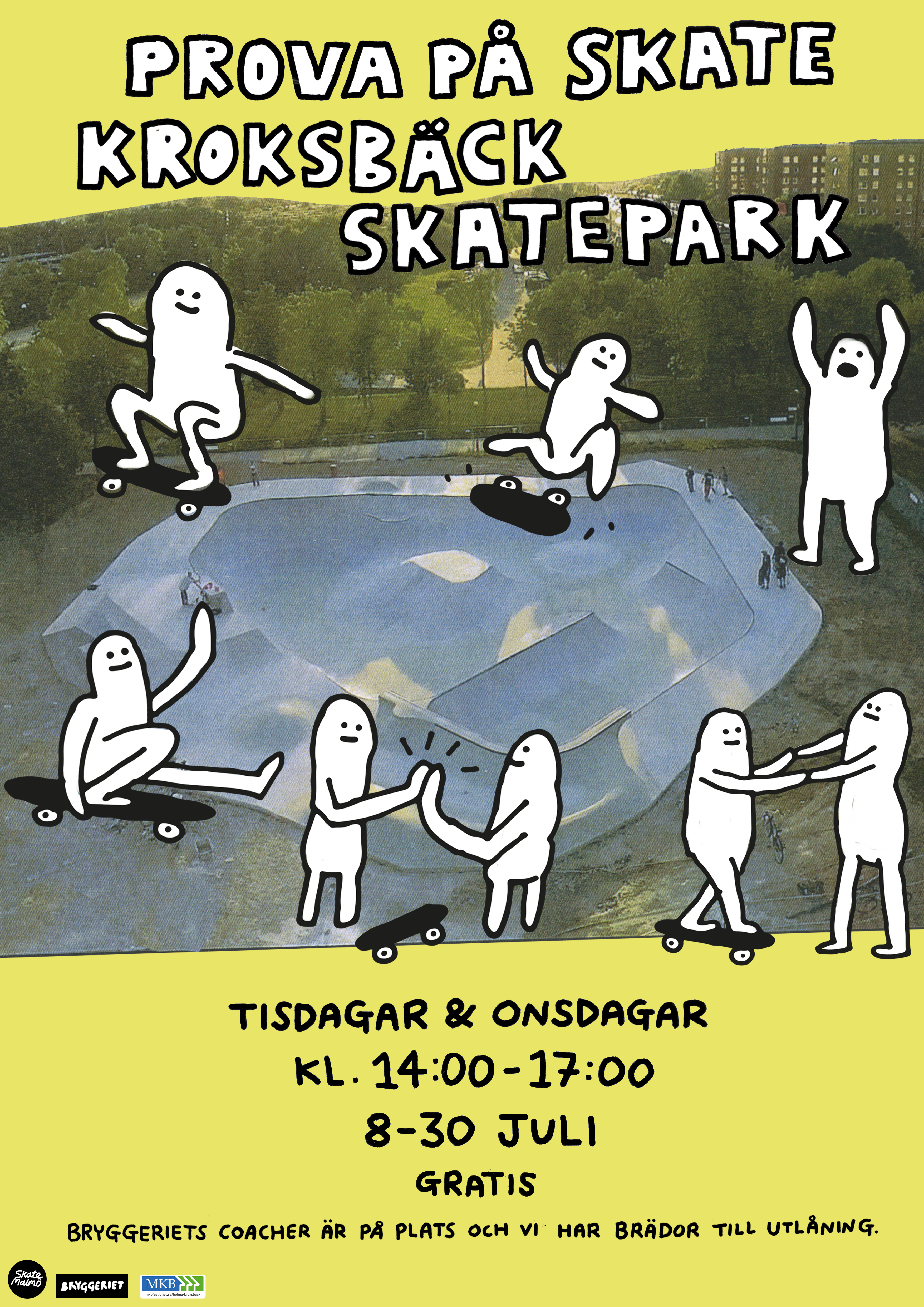 Kom och prova på att åka skateboard i Kroksbäck Skatepark med oss från Bryggeriet! Vi är på plats tis-ons kl. 14.00-17.00 med start den 8 juli. Vi har brädor till utlåning och coacher som hjälper dig att komma igång. Inga förkunskaper krävs och det är helt gratis att delta. Vi ses i skateparken!